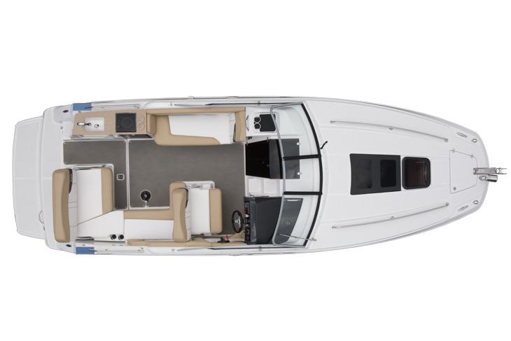 Glastron’s top of line GS 259 has a spacious cockpit with versatile seating arrangements alongside a full-service refreshment center. Adjust the cockpit seating to a substantial sun lounge and soak in the sun or cook the family’s favorite foods without needing to leave the boat. The well-appointed cabin features a queen sized mid-cabin berth, spacious forward V-berth, a large stand-up head, and breakfast center. Whether you are onboard for a day or an entire weekend is solely up to you. Either way, this express cruiser is just what the doctor ordered.