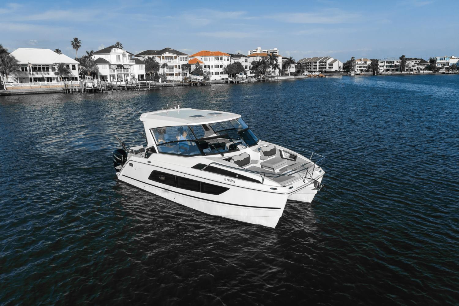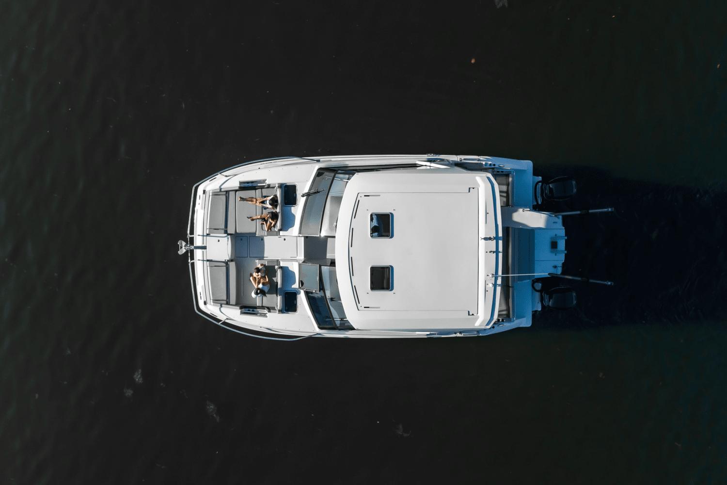 The Aquila 36 Sport is a totally innovative approach to having fun on the water. An outboard propelled power catamaran that can day boat with a multitude of revelers and all their water-toys or provide complete privacy for two couples on an adventure to newfound destinations, all with a multitude of options that support everything from invigorating watersports to sportfishing.