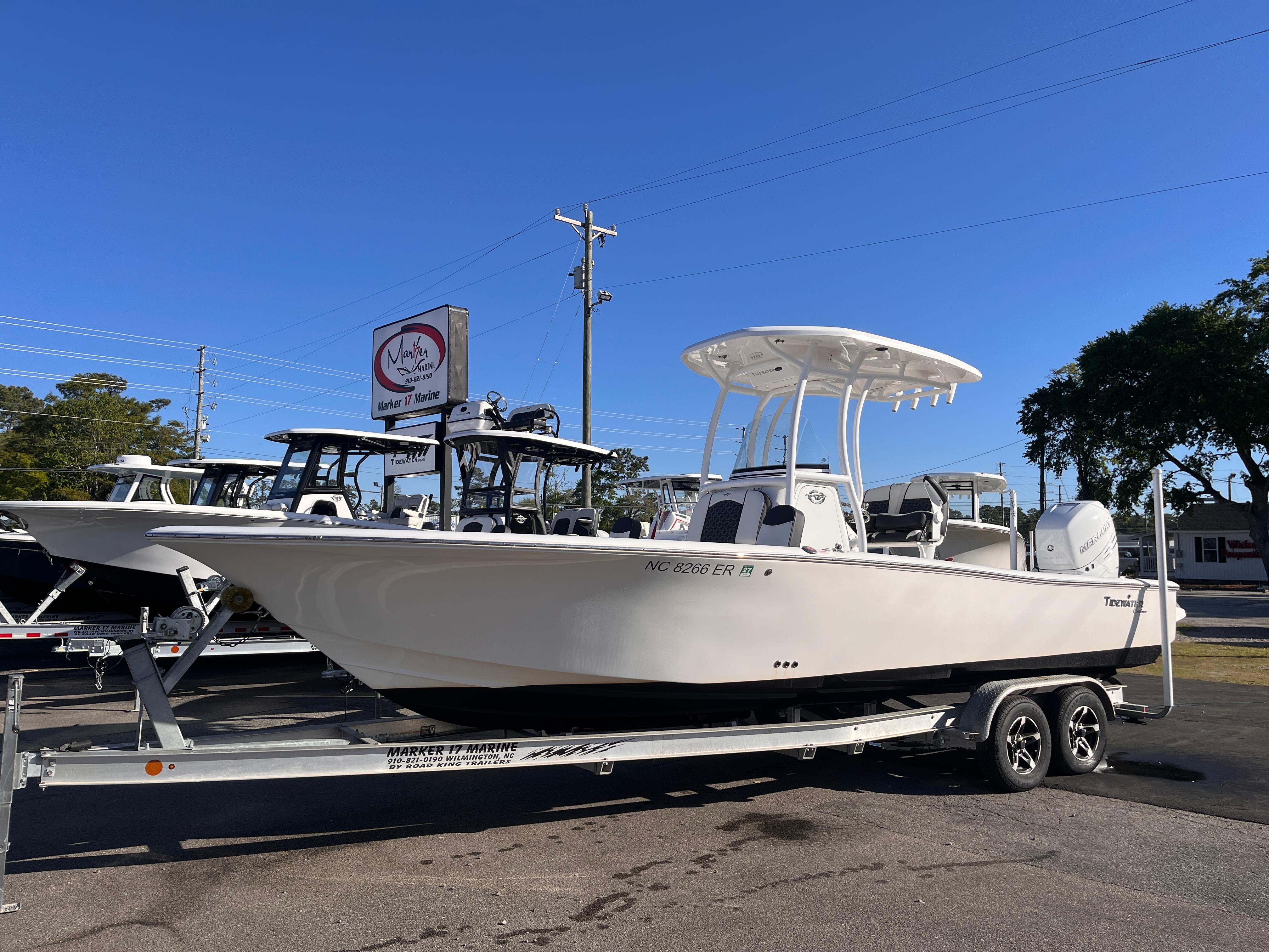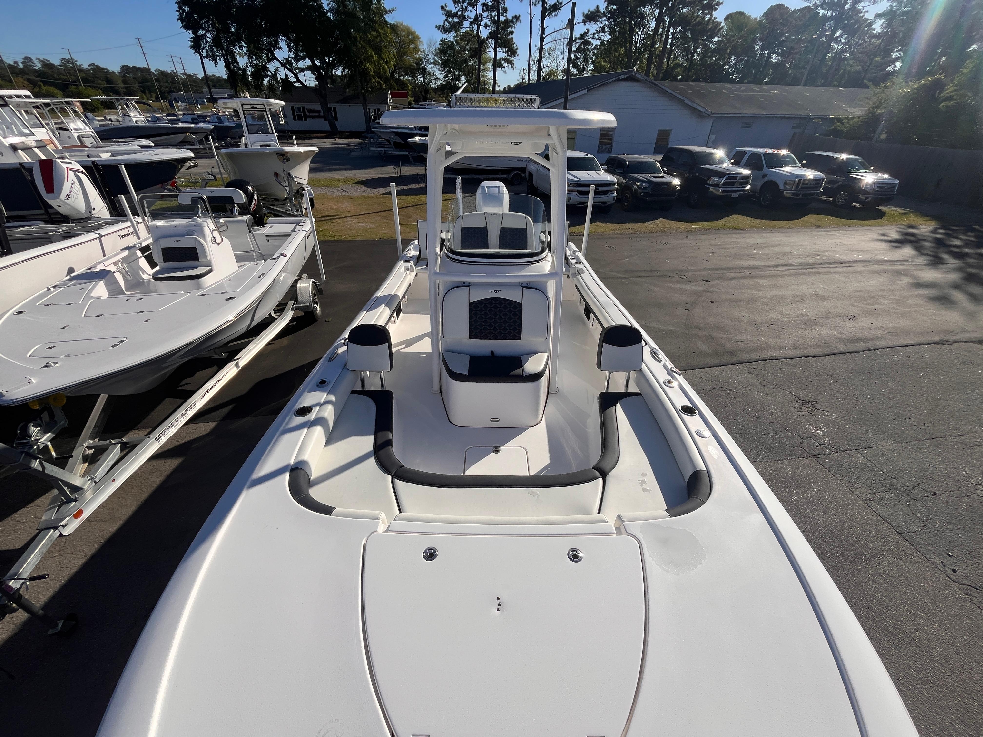 This pristine condition 2500 Carolina Bay model is a large, stepped bottom, feature full, high end, family friendly performance bay boat.